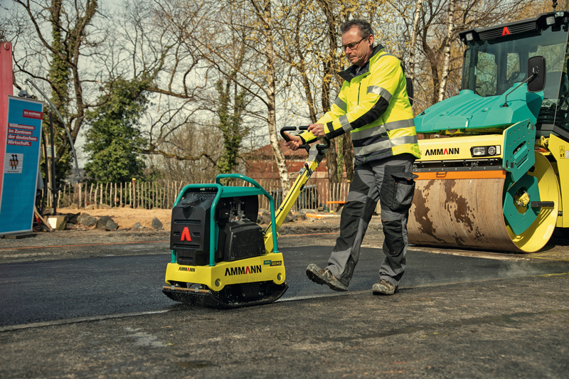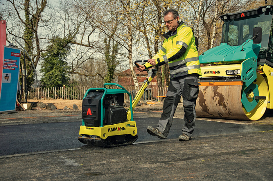 Die Zwei-Wellen-Erreger in den APR-Rüttelplatten wurden von Ammann auf einen exzellenten Vortrieb ausgelegt. Die Erregerkräfte werden zielgerichtet in den Boden eingeleitet. Um zu verhindern, dass diese Schwingungen auf die Knochen des Maschinenführers gehen, legte der Hersteller bei der Entwicklung der neuesten Typen der Baureihe besonderes Augenmerk auf die HAV-Werte und entwickelte ein System zur Reduzierung der Hand-Arm-Vibrationen durch eine Technologie mit Schwingungsdämpfer. Der Z-Puffer sorgt dafür, dass die Schwingungen der Maschine isoliert und nicht auf die Führungsdeichsel übertragen werden. Damit weist die Deichsel der APR-Baureihe HAV-Werte von unter 2,5 m/s² auf. Der Wert ist nach Anbieterangaben derart niedrig, dass gegenüber der BG Bau keine Dokumentation der Arbeitszeiten erforderlich ist. Die Gefahr gesundheitlicher Risiken wie das Hand-Arm-Vibrationssyndrom (HAVS), sieht Ammann damit bei der APR-Baureihe gebannt.