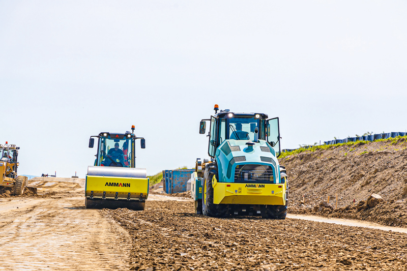 Bei Stuttgart hat Vinci zwei Walzenzüge von Ammann vor Ort im Einsatz: den 20-t-Walzenzug ARS 200 HX mit Glattbandage sowie den 22-t-Walzenzug ARS 200 HX ausgerüstet mit Stampffußbandage. Beide Maschinen verfügen serienmäßig über das Ammann-Kontrollsystem ACEforce. Dessen Sensoren erfassen permanent den aktuellen Untergrundverdichtungsgrad. Mit den Maschinen bereitet Vinci unter anderem das belastbare Planum für den ICE-Fahrweg. Da bei jeder Überfahrt eines Hochgeschwindigkeitszuges extreme Kräfte auf den Trassenuntergrund einwirken, stellt die Bahn außerordentlich hohe Qualitätsanforderungen an die Erdbauarbeiten. Ausgestattet mit einem vollhydrostatischen Antrieb sind die ARS-Walzenzüge unabhängig von der Geländebeschaffenheit auf allen Baustellen einsetzbar, ohne dass Leistungsverluste auftreten.