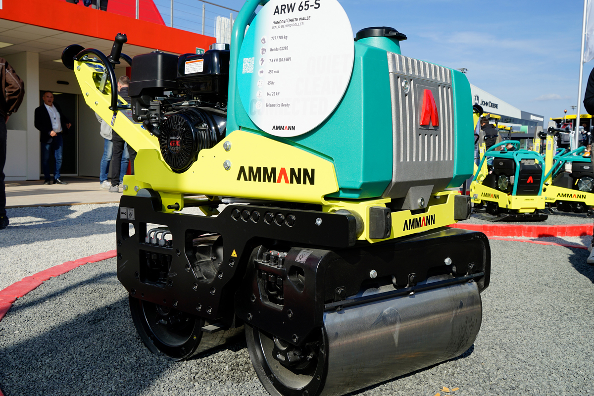 Neben Neuheiten bei den Straßenfertigern punktet Ammann 2025 auch mit cleveren Lösungen für die Verdichtung etwa im innerstädtischen Bereich. Mit der handgeführten Duplexwalze ARW 65-S lassen sich bei kleineren Asphalteinbauprojekten auf Gehwegen oder engen Gassen einfach per Joystick-Lenkung Kurven fahren. Mit ihren 15°-Lenkwinkel lässt sie sich mühelos und ohne Kraftaufwand um Hindernisse manövrieren. Damit wird die Walze eine echte Alternative zu kleinen Aufsitzwalzen. Das kompakte Design in Kombination mit wahlweise wählbaren Honda-, Hatz- oder Yanmar-Motoren spart Umrüst- und Transportzeiten und garantiert jederzeit gleichbleibende Verdichtungsqualität.