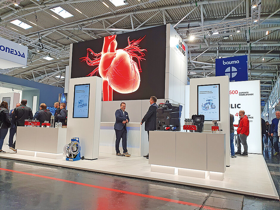 Unter dem Motto »Everything Hydraulic« präsentierte ARGO-HYTOS die ganze Bandbreite seiner Systemlösungen für das Bauwesen. Der Technologie-Fokus der Messe erlaubte es dem Unternehmen, sowohl seine gesamte Systemkompetenz in verschiedenen Applikationen für die Bau-/Kommunal- und Materialtransportbrache zu zeigen, als auch auf Produkt-Highlights wie dem neuen Rücklauffilter-Portfolio mit AirEx-Luftabscheidung einzugehen. Die Tanksysteme des Anbieters sowie die umfassenden Analyse-Möglichkeiten von Hydraulikflüssigkeiten mit innovativer Sensortechnologie waren laut ARGO-HYTOS ebenso von großem Interesse für die Besucher. Die vielfältige Einsatzmöglichkeiten der Steuer- und Regelungstechnik konnten live in diversen Ausführungen betrachtet und mit den Experten die Nutzungsoptionen in den eigenen Applikationen besprochen werden. Ebenfalls stellte ARGO-HYTOS erstmals sein neues Aftermarket-Programm vor. Eine hohe Verfügbarkeit und kurze Reaktionszeiten sowie Filterelemente in bekannter Qualität sollen den Wechsel bei Filtern in vielen gängigen Maschinentypen künftig deutlich vereinfachen. t