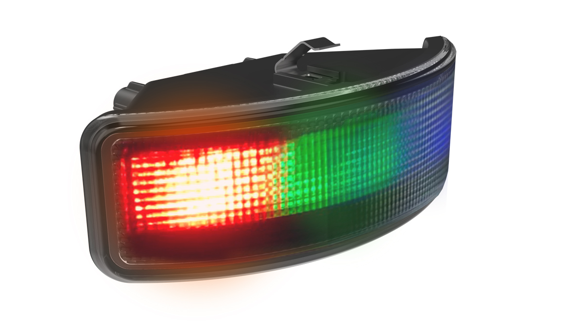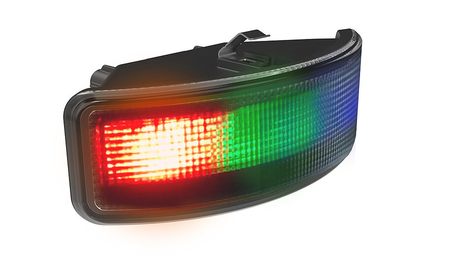 Ein Modul der »IBL I« besteht aus drei Kammern, wovon jede einzelne mit High-Power-RGB-LEDs versorgt ist. Alle 256 Farben sind darstellbar – drei unterschiedliche, statische oder dynamische Farben sogar zur gleichen Zeit. Das modulare System ist für die Eckmontage oder die gruppierte Montage ausgerichtet. Die »IBL I« wird mit integriertem, dreipoligem AMP-Superseal-Anschluss ausgeliefert. Sie arbeitet innerhalb einer Umgebungstemperatur von -40 bis +85° C und erlaubt eine Versorgung im Spannungsbereich von 9 bis 36 V. Das Modul entspricht den Anforderungen der europäischen Norm ISO 18497:2021 und der Schutzgrad ist mit IP6K9K ausgewiesen. Die Datenanbindung der »IBL I« erfolgt über das serielle Kommunikationssystem LIN-BUS. Dank der Selbstadressierung wird der Installations- und Inbetriebnahmeprozess vereinfacht. Die Software kann kundenspezifische Anwendungslösungen abbilden, etwa im Betrieb oder in der Überwachung.