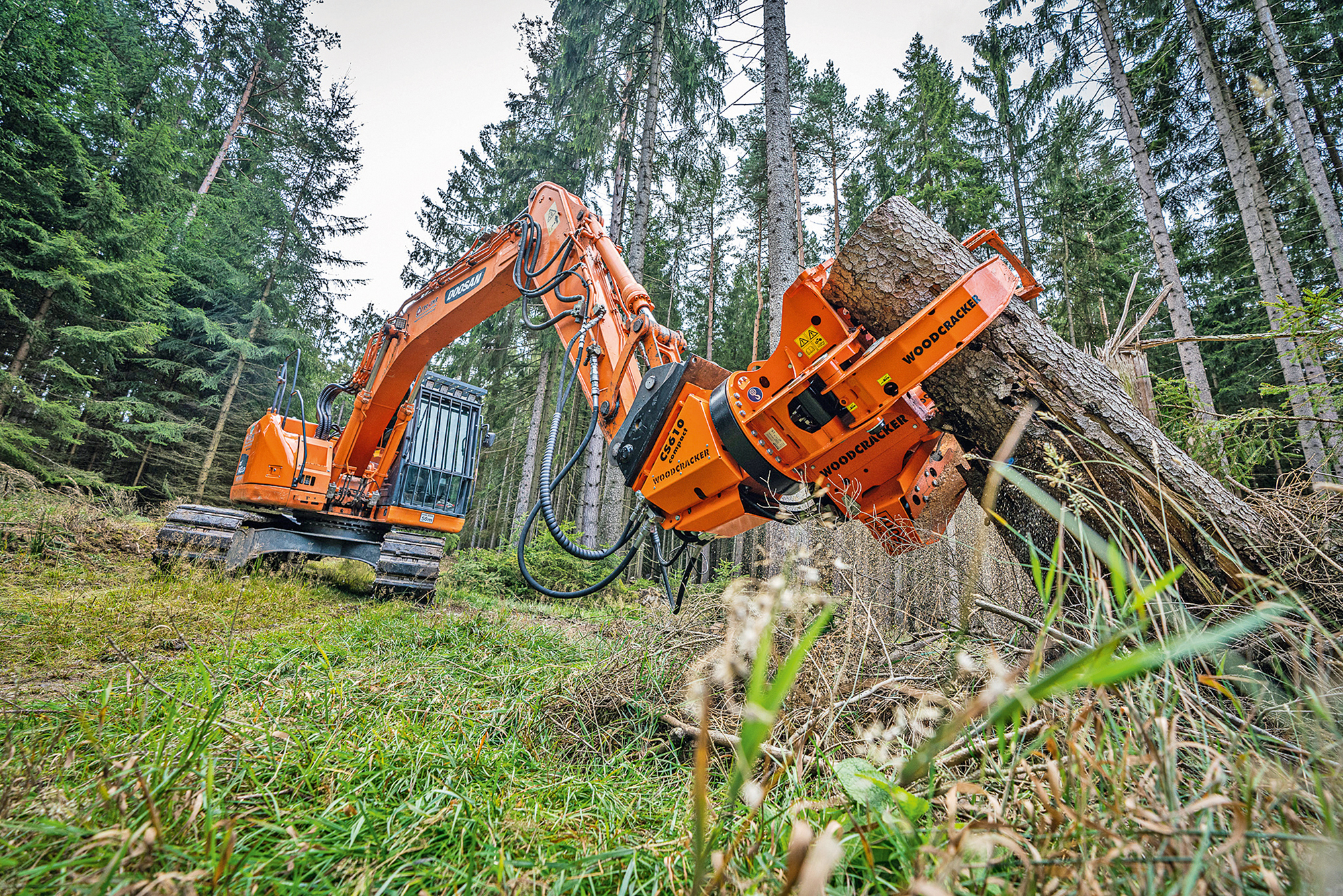 bauMAGAZIN: Seitdem sind mehr als 17 Jahre vergangen. Ausgelegt war das erste offizielle Modell des Woodcrackers auf Bagger der 10-t-Klasse. Wie verhält es sich mit der Holzspaltzange heute?