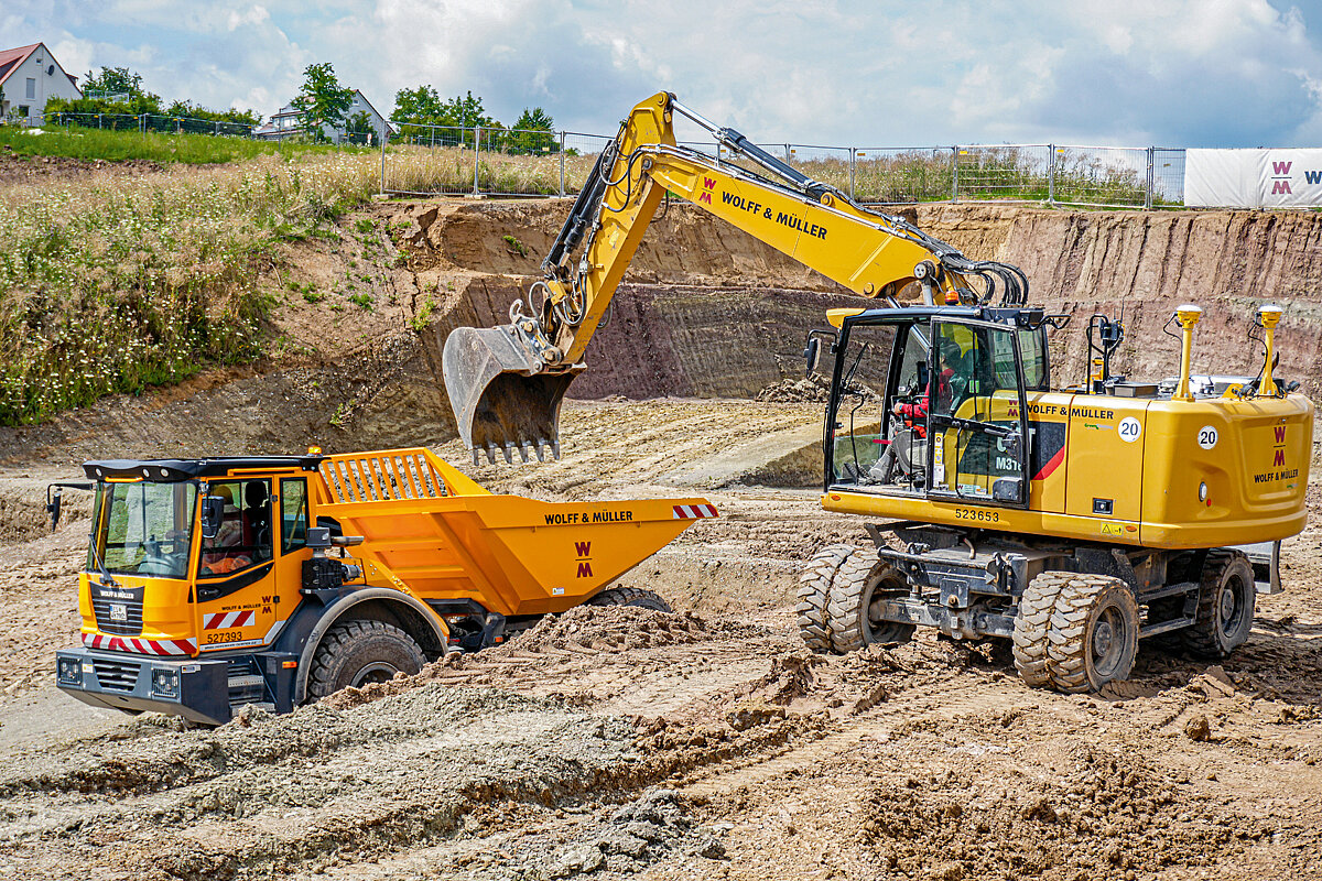 Wolff & Müller gilt als eines der innovativsten Bauunternehmen Deutschlands – ein Anspruch, der nicht nur in der Art zu bauen, sondern auch in der Auswahl der eingesetzten Technik sichtbar wird. Seit Anfang des Jahres sind zwei Bergmann-»C815«-Dumper in Rundkipp-Ausführung Teil des Fuhrparks. Die Entscheidung für die Maschinen aus dem Hause Bergmann war dabei alles andere als zufällig: Sie ist laut Unternehmen »Ausdruck eines konsequenten Anspruchs an Qualität, Effizienz und Sicherheit«. Bereits der erste Einsatzort zeigte, dass sich das Bauunternehmen mit Sitz in Stuttgart nicht mit Standardlösungen zufriedengibt. Direkt nach der Anlieferung wurden die beiden Kompaktdumper auf einer der prominentesten Baustellen im Raum Stuttgart eingesetzt: Auf dem Gelände des Stuttgarter Flughafens kamen die beiden Dumper auf einer hoch frequentierten Baustelle zum Einsatz. Dort, wo jede Bewegung sitzen muss und logistische Abläufe exakt aufeinander abgestimmt sind, bewiesen die »C815« laut den Beteiligten ihre Stärke: kompakte Maße bei hoher Nutzlast präzises Fahrverhalten, und ein durchdachtes Sicherheitskonzept. Für Wolff & Müller, so das Unternehmen, eine ideale Kombination, um auch unter Zeitdruck verlässlich und produktiv zu arbeiten – ohne Kompromisse bei der Sicherheit oder beim Komfort des Bedienpersonals. Heute sind die Maschinen bereits auf der nächsten Baustelle im Einsatz, bei der Erschließung des neuen Baugebiets »Ziegelhöhe« in Mühlacker, und tragen auch dort dazu bei, die Materialbewegungen effizient und sicher abzuwickeln.