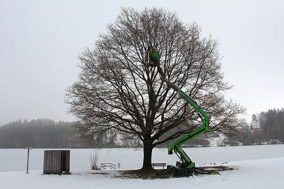 Für dieses Modell hat sich Markus Bauer nach reiflicher Überlegung entschieden: „Für einen Einzelunternehmer ist eine Investition in dieser Größenordnung nicht einfach“, sagt er. Doch die Hebebühne bringe in der Praxis große Vorteile, die den finanziellen Aufwand übersteigen. Davon überzeugte sich der Baumpfleger, der neben Kommunen auch für die Regierung von Niederbayern und Privatpersonen arbeitet, zunächst im Rahmen eines umfangreichen Tests. Im vergangenen Jahr hatte er bei Beutlhauser in Passau eine Leguan 190 gemietet, um sie im praktischen Einsatz zu prüfen.