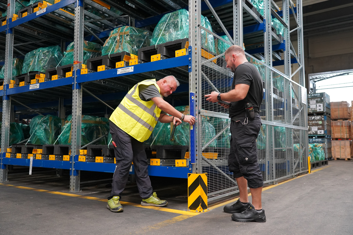 An der Zusammenarbeit mit Safe Work schätzt Maximilian Augustin die klare Kommunikation, die Verlässlichkeit und die schnellen Reaktionszeiten. „Wenn ein neuer Kran geprüft werden muss, setze ich mich direkt mit Marcus Karl in Verbindung. In der Regel erfolgt die Prüfung dann innerhalb eines Tages“, berichtet er. Ein weiterer Mehrwert: Bei Ausfällen oder Abweichungen organisiert Beutlhauser Safe Work die Beschaffung von Ersatzteilen, sodass sich der Kunde nicht selbst darum kümmern muss. „Wir können alles aus einer Hand und damit das Gesamtpaket bieten“, verdeutlicht Karl. Grundsätzlich bezieht sich die Zusammenarbeit zwischen beiden Unternehmen nicht einzig auf Safe Work. Beinbauer bezieht Stapler von Linde über Beutlhauser, derzeit sind rund 80 Flurförderzeuge, darunter 16 Mietgeräte, im Einsatz in Büchlberg. Die Intralogistikabteilung unterstützt Beinbauer zudem regelmäßig bei der Ausstattung der Werkshallen mit zugeschnittenen Regallösungen.