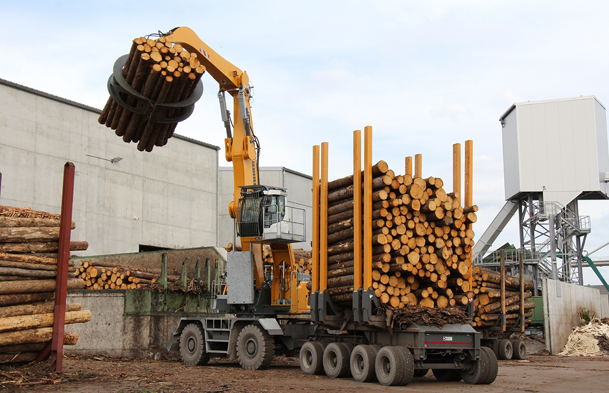 Wenn Rundholz aus Schadensgebieten mit dem Zug eintrifft, muss es schnell gehen. Weil die Gleiskapazitäten zwischen Plattling und Deggendorf begrenzt sind und der Personenverkehr durch die Waldbahn Vorrang hat, sind die Zeitfenster für den Gütertransport eingeschränkt. Folgerichtig wird eine kraftvolle Maschine benötigt, mit der der Umschlag und der Transport im erforderlichen Tempo erfolgen können. Diese Anforderung erfüllt die neue Liebherr-Umschlagmaschine LH 60 M Timber.