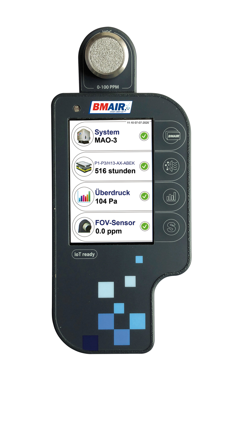 Die wichtigsten Merkmale des »MAO-3 Cab Guard« robustes Kunststoffgehäuse selbstreinigender, winkelloser HEPA-Filter vollständig integrierter Aktivkohlefilter Filterinfos und Betriebsstundenzähler durch RFID-Technik bürstenloser Lüftermotor einfache Montage durch kompakte Bodenplatte ausgerüstet mit PAC Smart Control