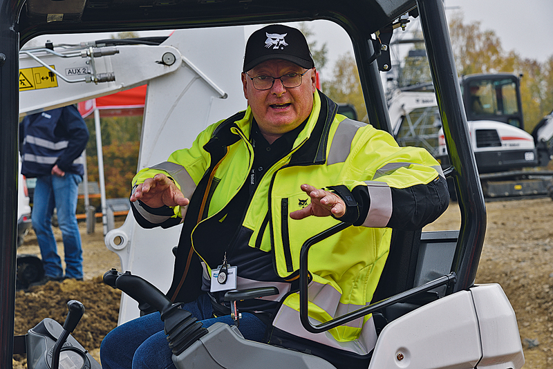 Besondere Aufmerksamkeit wurde dem laut Bobcat weltweit ersten elektrischen Minibagger im 1-t-Segment geschenkt: Der erstmals auf der Bauma im April gezeigte E10e (das bauMAGAZIN berichtete in Heft 4/19, Seite 90) verfügt über einen wartungsfreien Lithium-Ionen-Akku, der auf die kompakten Maße einer Zero-Tail-Swing-Kurzheck-Maschine (ZTS) abgestimmt ist. Laut Hersteller kann der E10e einen 8-Stunden-Einsatztag ableisten. Wird für das Laden ein externer Supercharger verwendet, lassen sich laut Bobcat 80 % der Akkukapazität in unter zwei Stunden erreichen. Der Bagger arbeitet besonders leise: Der Geräuschemissionswert des E10e liegt bei 74 dBA gegenüber dem E10, der rund 80 dBA misst. »Das ist halb so laut wie eine vergleichbare Dieselmaschine«, sagt Freddy Remory, Produkt-Manager Kompaktlader bei Bobcat. »Durch die leichte Handhabung, die geringe Geräuschentwicklung und den emissionsfreien Antrieb eignet sich der E10e zum Beispiel auch gut für Abrissarbeiten im Innenbereich, bei Kellerbauten oder genereller Nachtarbeit.«