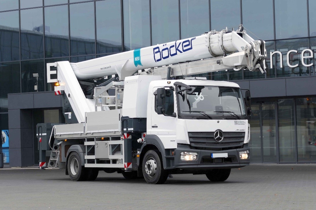 Parallel dazu nutzte der Betrieb den besonders kompakten Böcker-Autokran AK 36 mit einem Personenkorb PK 250 an einer der benachbarten Hallen, um Inspektionsarbeiten durchzuführen. In einer Arbeitshöhe zwischen 17 und 20 m wurden die Dachrandverkleidung sowie das großflächige Hallenlogo überprüft. Der AK 36 überzeugte durch seinen schnellen Aufbau mit Autonivellierung und Reichweitenvorschau, seine große Arbeitshöhe und die flexible Umrüstung zur Arbeitsbühne, die aufwendige Gerüstkonstruktionen überflüssig machte.