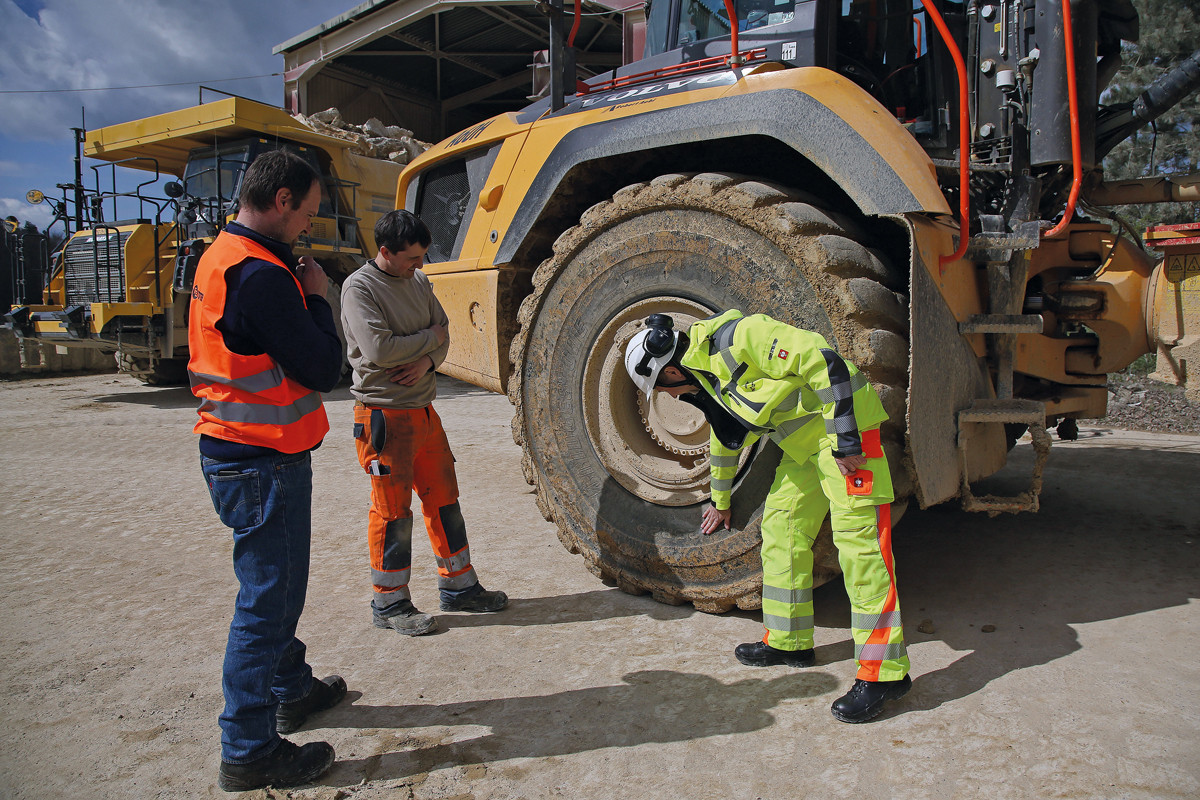 Mit Bedacht wurden Bridgestone Premiumreifen für 58 der betriebseigenen Maschinen ausgewählt, von denen jede einzelne eine jährliche Laufleistung von bis zu 2 000 Stunden zurücklegt: »Eine der größten Herausforderungen sind die ungewöhnlich hohen Steigungen, die unsere radbetriebenen Baumaschinen überwinden müssen. Auch die langen Umläufe stellen besondere Anforderungen an die Bereifung unserer Fahrzeuge«, sagt Martin Scherer, Werkleiter bei der Franken-Schotter GmbH & Co. KG. »Für das richtige Maß an Stabilität, Standvermögen, Laufleistung und Belastbarkeit haben wir uns daher für Bridgestone OTR-Premiumreifen entschieden. Diese eignen sich zudem in Kombination mit den verwendeten Schutzketten ideal für unseren Betrieb.«