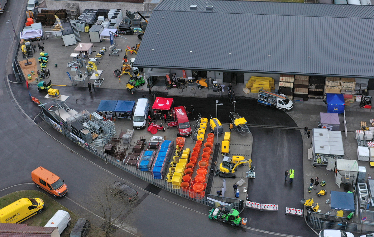 „Durch die deutlich erhöhte Lagerhaltung können wir die Lieferfähigkeit deutlich steigern. Wir sind jetzt in der Lage, schnell, flexibel und effizient Kundenanforderungen voll-umfänglich zu bedienen – auch Puffervorräte für größere Kundenprojekte sind vorrätig“, sagt Regionalleiter Paul Wirth. Das Gebäude mit rund 1.000 Quadratmetern umbauten Raum bietet einen modernen Baushop für Baugeräte, Werkzeuge und Verbrauchsmaterial. Im Außenbereich wurde eine Testfläche für Verdichtungsgeräte eingerichtet.