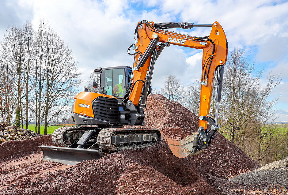 Kunden, die eine schwenkbare Nullheck-Konstruktion mit festem Monoausleger suchen, ähnlich wie bei einem ausgewachsenen Raupenmodell, können sich für den CX85E mit einem Betriebsgewicht von 8,8 t entscheiden. Für Unternehmen, die eine Auslegerschwenklösung wie bei einem Minibagger,bevorzugen, um einen besseren Zugang zu beengten Baustellen zu erhalten, ist der CX90E mit einem Betriebsgewicht von 9,2 t geeignet. Die höchste Flexibilität mit einer größeren horizontalen Reichweite und einer höheren Schütthöhe bietet der CX100E. Dieses Modell mit einem Gewicht von 10,1 t ist mit einem zweiteiligen Knickarm (TAB) und einer Auslegerschwenkung ohne Heckschwenkung ausgestattet. Wenn Kunden zusätzliche Stabilität und Hubkapazität benötigen, können der CX85E und der CX90E mit einem zusätzlichen 440 kg schweren Gegengewicht bestellt werden, das beim CX100E Standard ist. Das zusätzliche Gewicht wird intern montiert und hat keinen Einfluss auf den Null-Heckschwenküberhang, wodurch die kompakten Abmessungen dieser Maschinen der 8-10-t-Klasse erhalten bleiben. Alle drei Maschinen können bei Bedarf auch mit einem externen 900-kg-Zusatzgewicht ausgestattet werden.