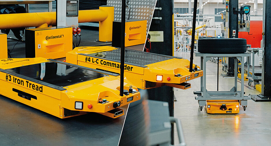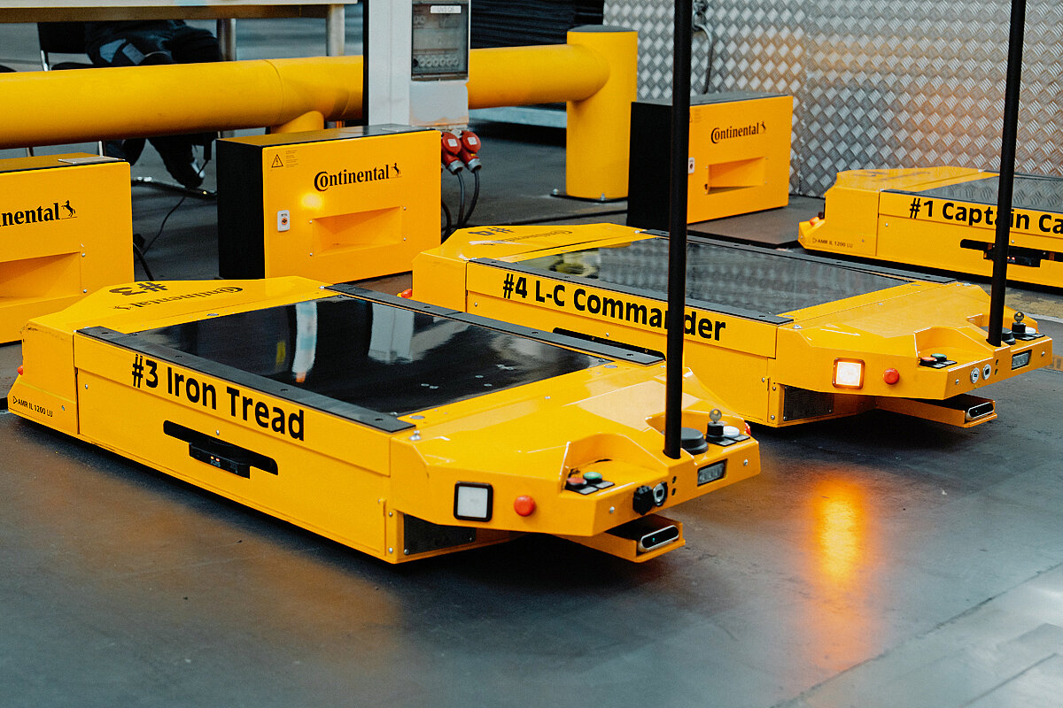 Felix Hantelmann, Leiter des ContiLifeCycle-Werks, zieht ein erstes Resümee: »Seit einem halben Jahr unterstützen selbstfahrende Roboter unseren Arbeitsalltag in der Produktion. Sie übernehmen einfache, wiederkehrende Transportaufgaben, etwa das Bringen eines Reifens von einem Punkt zum nächsten. Dafür sind die Roboter direkt mit unserem digitalen Auftragssystem verbunden. Sie wissen genau, wohin sie fahren und wie sie sich dafür untereinander abstimmen müssen. So ergänzen die autonomen Roboter unsere tägliche Arbeit sinnvoll und tragen zu einer sicheren, effektiven und ergonomisch optimierten Produktionsumgebung bei.«