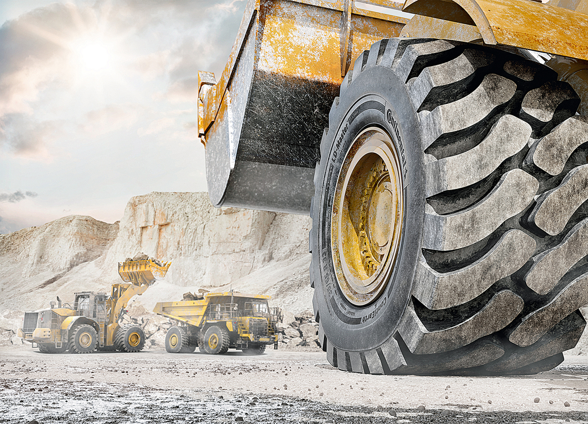 Neben dem LD-Master L5 Traction zeigt Continental auf der Bauma den Baumaschinenreifen EM-Master E3/L3 als 65er-Querschnittserie sowie eine Vorschau auf einen neuen SkidSteer-Vollreifen. t