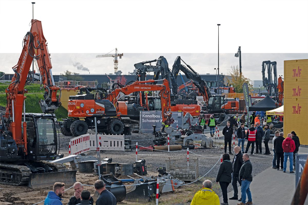 Genutzt wurden die Praxistage im Oktober vorwiegend, um auf aktuelle Neu- und Weiterentwicklungen einzugehen. Zur Tradition ist es allerdings auch geworden, auf Augenhöhe über aktuelle Marktentwicklungen, die angespannte Situation innerhalb des Wohnungsbaus oder Sinn und Zweck der Elektrifizierung sowie Digitalisierung der Baustelle zu diskutieren. Ein Trendthema stellte diesmal die Vernetzung von Maschine, Mensch und Technik dar – gezeigt haben das unter anderem Aussteller wie Makineo, viscan, KTEG, Sodex oder Leica (das bauMAGAZIN berichtet darüber ausführlich ab Seite 50 in dieser Ausgabe). Der Grundgedanke hierbei lautete, die digitale Baustelle nicht nur im Kleinen zu denken, sondern für herstellerübergreifende Kompatibilität zu sorgen, um Arbeitsprozesse produktiver und zeitsparender zu gestalten.