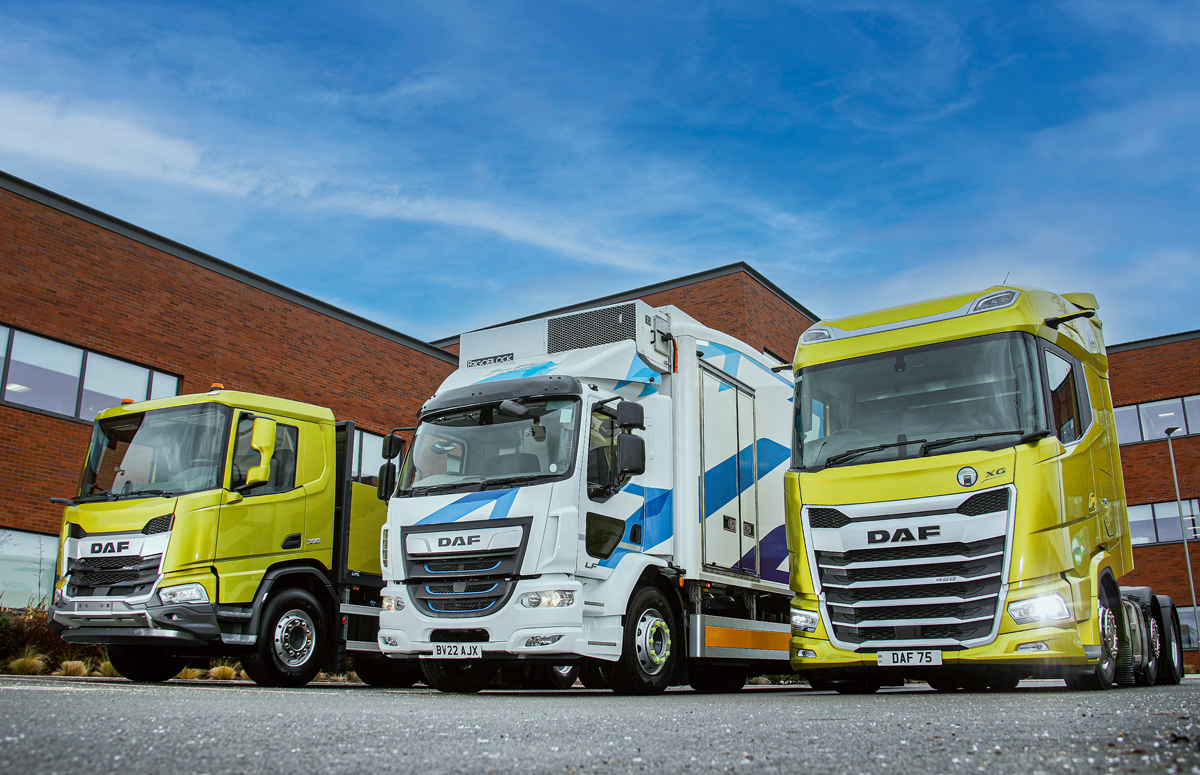- Bestellt wurden XF- und XG-Zugmaschinen der neuen Generation u. a. für den Schwertransport sowie Fahrzeuge der Baureihen LF und XD mit E- und Dieselantrieb für den Verteilerverkehr und gewerbliche Anwendungen. Die Fahrzeuge werden mit Reparatur- und -Wartungspaketen erworben und über das DAF-Partnernetz gewartet.