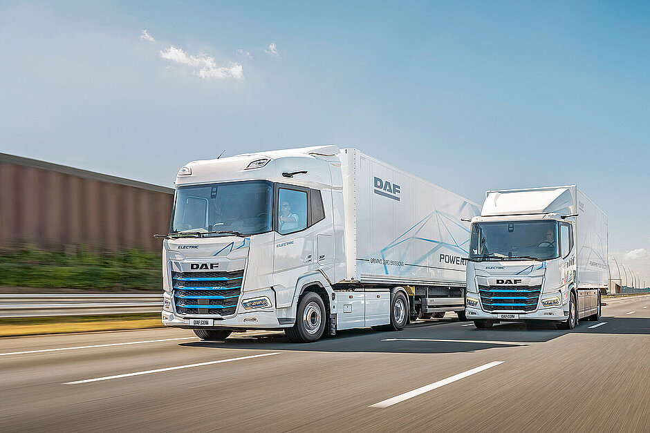 Der »XG« und »XG+ Electric« können mit drei bis fünf Batteriesätzen ausgestattet werden, die je nach Fahrzeugeinsatz modular am Fahrgestell positioniert werden können. Die Option mit fünf Batteriesätzen liefert eine emissionsfreie Reichweite von bis zu über 500 km mit einer einzigen Ladung. Mit optimaler Fahrzeug- und Ladeplanung können die Fahrzeuge nach Angaben von DAF vollständig elektrisch mehr als 1 000 km pro Tag zurücklegen. Die Baureihe ist das Ergebnis aus dem »Paccar EX-D2«-Antriebsstrang sowie dem intelligenten Batteriemanagementsystem und dem aerodynamischen Design der Lkw von DAF. Das konische, nahezu nahtlose Fahrerhausdesign und die gebogene Windschutzscheibe sorgen für einen günstigen Luftwiderstandskoeffizienten. Unterstützt wird dies außerdem durch die Seitenverkleidungen, Spoiler und Kotflügel sowie die Verwendung von Digitalkameras anstelle von herkömmlichen Spiegeln.