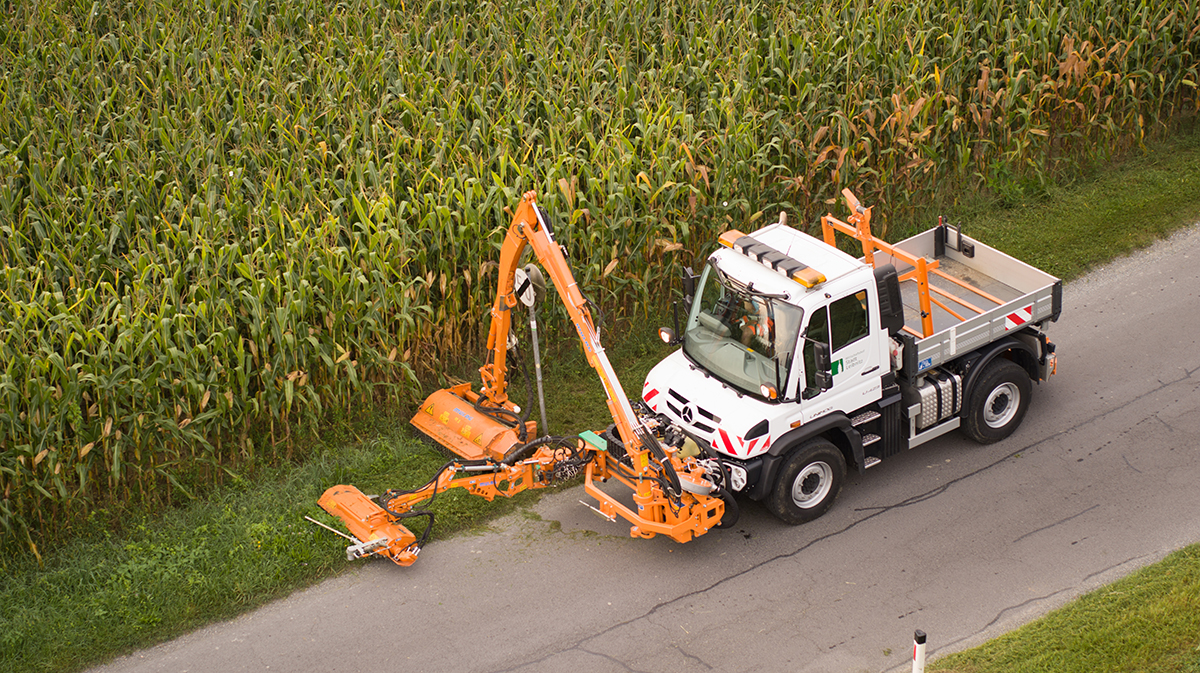 Moderne Unimog mit passenden Aufbauten und Anbaugeräten
