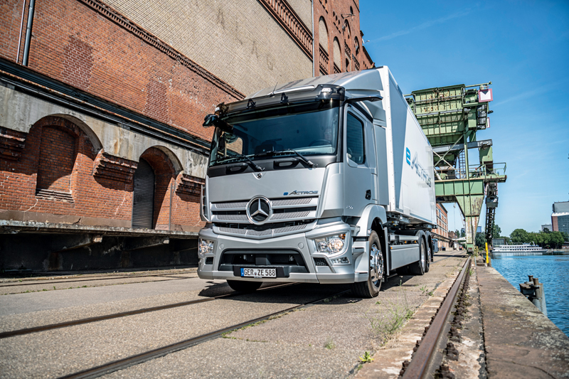 Zahlreiche Merkmale und Vorrichtungen sollen im eActros für ein hohes Maß an Verkehrssicherheit für alle Beteiligten sorgen. So können spezielle Crash-Elemente mit Aluminiumprofil die Batterien im Falle eines Seitencrashs schützen, darin integrierte Sensoren können einen Crash-Fall erkennen. In diesem Fall würde automatisch die HV-Batterie vom Rest des Fahrzeugs getrennt werden. Zudem kann der Fahrer manuell die im Fahrerhaus installierte HV-Abschaltung betätigen. Für die verbesserte akustische Wahrnehmung durch Fußgänger oder Radfahrer ist der eActros serienmäßig mit einem externen Acoustic Vehicle Alerting System (AVAS) ausgestattet. Für mehr Sicherheit beim Rechtsabbiegen ist im eActros ebenfalls serienmäßig der Abbiege-Assistent S1R verbaut. Darüber hinaus kann der ebenfalls serienmäßig verbaute Notbremsassistent Active Brake Assist der fünften Generation mit Fußgängererkennung die Gefahr einer Kollision im Längsverkehr sowohl in der Stadt als auch auf Landstraßen und der Autobahn reduzieren. t