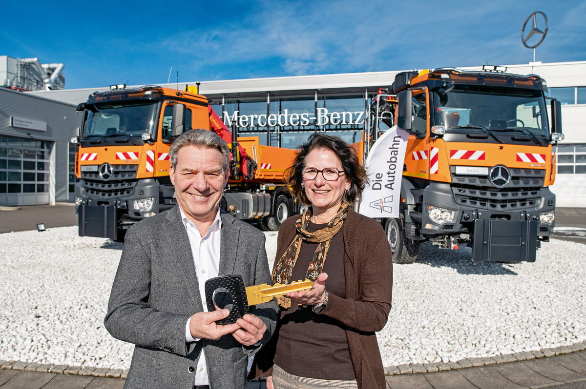 René Rudelt äußert sich bei der Übergabe: »Wir sind sehr stolz, dass wir bei der letzten Ausschreibung der Autobahn GmbH des Bundes über insgesamt 109 Lkw den Zuschlag erhalten haben. Mit unseren Fahrzeugen tragen wir dazu bei, den ganzjährigen Betrieb und die Sicherheit auf den Autobahnen in Deutschland zu gewährleisten.«