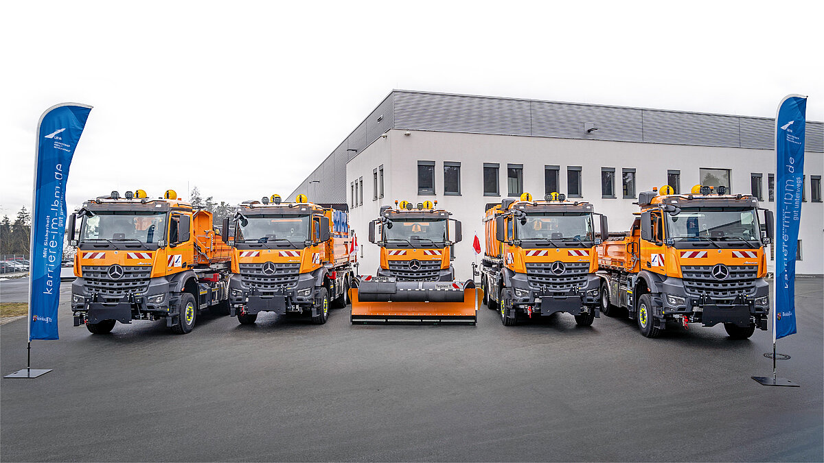 Mercedes-Benz Trucks hat dazu gemeinsam mit mehreren Partnern Lösungen realisiert, die speziell für die winterdienstlichen Einsatzbedingungen im kommunalen Bereich ausgelegt sind. Der Aufbauhersteller Paul Nutzfahrzeuge stattet die Fahrzeuge mit verschiedenen An-, Auf- und Umbauten aus, darunter spezielle Kamerasysteme und eine benutzerfreundliche elektronische Steuerung für die Werkzeuge und Geräte. Bucher Municipal liefert Winterdienstausrüstungen und Hydrauliksysteme, Palfinger hocheffiziente Ladekrane und robuste Abrollkipper sowie Meiller Zwei- und Dreiseitenkipper. Auch das sind wieder gute Beispiele dafür, warum die Branche letztlich davon profitiert, wenn Synergien genutzt und ohnehin schon kluge Lösungen noch weiter gedacht werden.