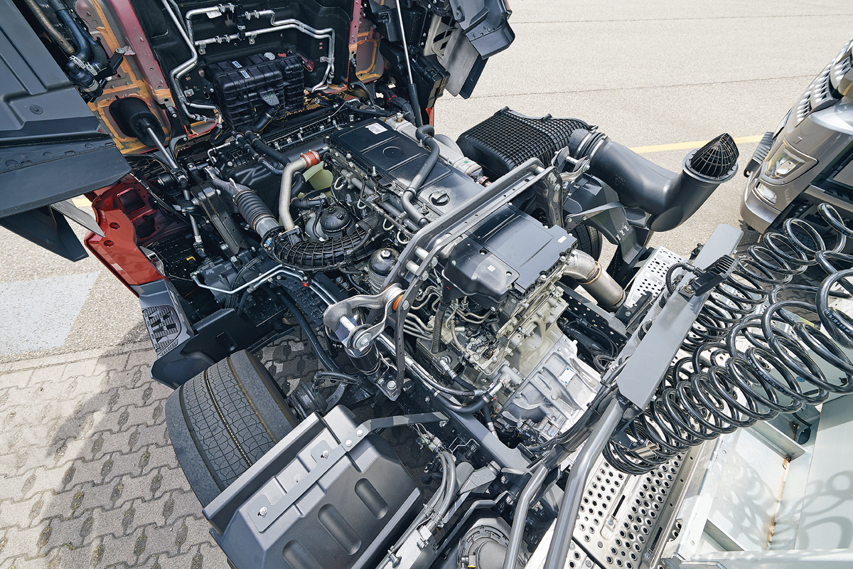 Neben dem konstant wachsenden Portfolio an Fahrzeugen mit batterieelektrischen Antrieben will Mercedes-Benz Trucks auch im Premiumsegment der klassischen Diesel-Lkw Maßstäbe setzen. Ein Beispiel hierfür soll die dritte Generation des schweren Nutzfahrzeugmotors OM 471 werden. Der in den Actros- und Arocs-Baureihen ab Oktober verfügbare Heavy-Duty-Motor ist auf die Senkung der Total Cost of Ownership (TCO) ausgerichtet, ohne dass darunter Leistung, Fahrdynamik oder Fahrkomfort leiden sollen (das bauMAGAZIN berichtete bereits in Heft 5/22, Seite 124).