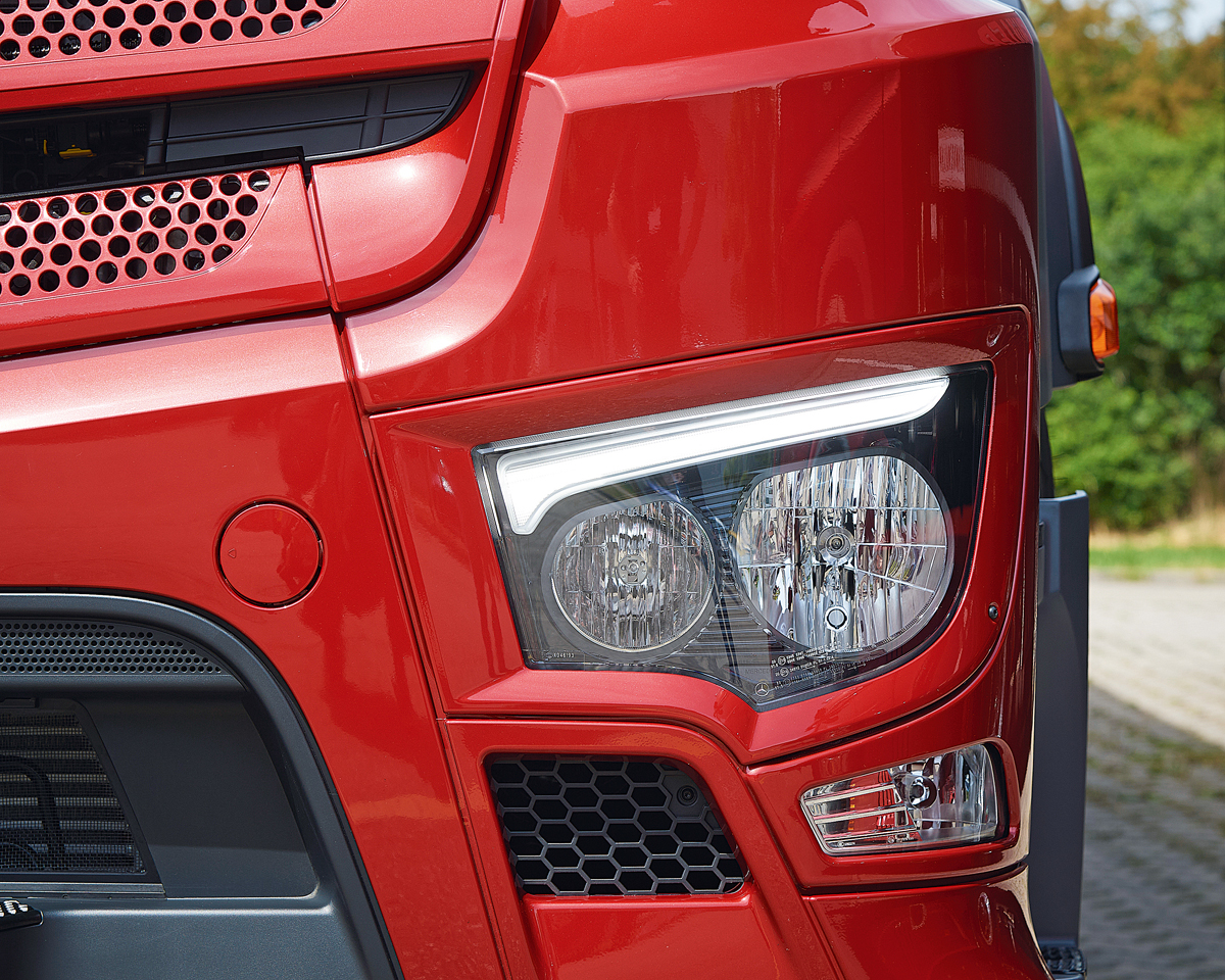 Eine ganz eigene Optik sollen Arocs und Actros durch die neuen Hauptscheinwerfer mit LED-Lichtsignatur erhalten. Optional erhältlich sind zudem auch Hauptscheinwerfer in Voll-LED-Ausführung, die für noch mehr Sicherheit insbesondere bei Dunkelheit sorgen können. LED-Scheinwerfer zeichnen sich im Vergleich zu Xenon-Scheinwerfern durch eine höhere Lichtstärke und die Ausleuchtung der Fahrbahn aus. LED-Scheinwerfer sind im Vergleich zu herkömmlichen Halogen-Leuchtmitteln wartungsfreundlicher und energiesparender, darüber hinaus weisen sie eine höhere Lebensdauer auf. t