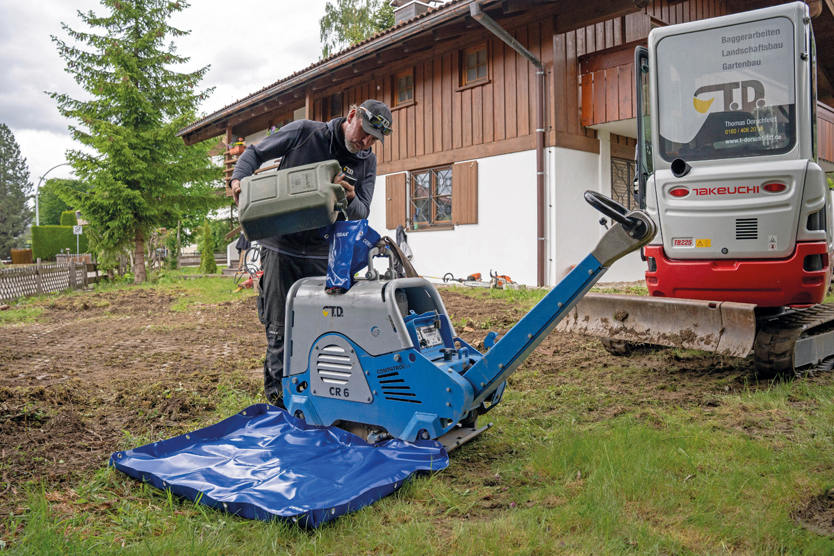 Die Einfach-Rosette wird direkt an der Verschraubung angebracht und dient als zusätzlicher Spritzschutz. Für größere Wartungsarbeiten oder als allgemeine Unterlage bei Reparatureinsätzen bietet »DerBlaue« ergänzend eine Unterlegwanne in zwei Größen. Diese schützt den Untergrund vor Tropfverlusten, dient als Arbeitsunterlage auf nassem oder verschmutztem Untergrund und ist sowohl im Innen- als auch im Außeneinsatz verwendbar. Im Vergleich zu starren Kunststoffwannen punkten die flexiblen Systeme durch ihr geringes Transportvolumen und ihre Anpassungsfähigkeit. In der Praxis bedeutet das: weniger Reinigungsaufwand, höhere Sicherheit bei Umweltschutzauflagen und eine insgesamt effizientere Durchführung mobiler Servicearbeiten.s