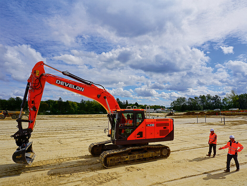Die Maschinen von Develon sollten im Rahmen der Vorführung sowohl ihre Leistung als auch ihre intelligenten Sicherheitsfunktionen demonstrieren, darunter das »E-Stop«-System: Es stoppt die Bewegung einer Maschine, sobald eine Person innerhalb einer Entfernung von 4 m um den Bagger erkannt wird. »Der bei der Vorführung verwendete neue Develon-Bagger ›DX230LC-9‹ war mit einer Reihe intelligenter Sicherheitsfunktionen ausgestattet, darunter Kollisionswarnungen und Rundumüberwachung. Das ebenfalls hierzu gehörige ›E-Stop‹-System funktioniert wie ein automatischer Notbremsassistent und fand bei den Bedienern und Teilnehmern der Vorführung besondere Beachtung«, berichtet Stephane Dieu, Produktmanager für Develon-Bagger in Europa.