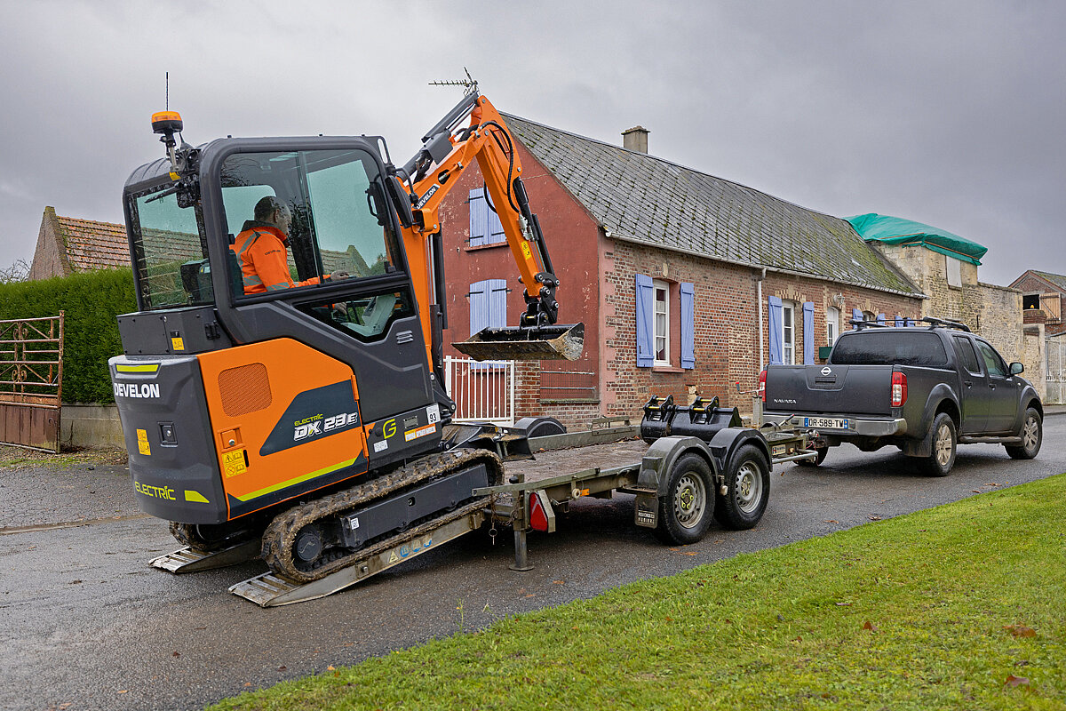 Der »DX23E-7« bietet im Vergleich zum Develon-Dieselbagger »DX19-7« eine um fünf Prozent höhere Hubkraft sowie weitere Verbesserungen wie eine bessere Arbeits- / Fahrleistung und eine erhöhte Stabilität. Bei der Entwicklung des elektrischen Antriebssystems (EPS) im »DX23E-7« wurde die Rahmenquerplatte aus dem »DX19-7« entfernt und der hintere Wenderadius (+35 mm) vergrößert, um Platz für den Einbau des Akkupacks zu schaffen. Da Elektrobagger keinen Motor haben, ist der Aufwand für regelmäßige Wartungsarbeiten beim »DX23ZE-7« im Vergleich zum Dieselbagger »DX19-7« deutlich geringer. Es sind lediglich hydraulikbezogene Wartungsarbeiten in Intervallen von 1 000 Stunden erforderlich.
