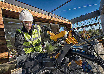 Im Bereich der Winkelschleifer vergrößert DeWalt zudem sein Portfolio mit den Schutzhauben DWE46225 und DWE46229 in den Größen 125 mm und 230 mm für Betonarbeiten. Der drehbare Absauganschluss ist mit dem AirLock-System kompatibel, verhindert das Abknicken des Saugschlauchs und unterstützt die effektive Entstaubung.
