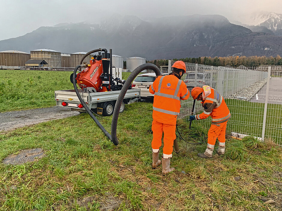 Das lediglich 2,77 m x 1,6 m x 1,88 m große Saugbaggermodell FX20 verfügt über einen 25-PS-Benzinmotor und liefert eine Saugleistung von 15,3 m³/min. Die Aufgabenstellung in der Schweiz für das beauftragte Unternehmen DWL Baumaschinen aus Triengen im Kanton Luzern umfasste mehrere Sondierungslöcher, die zur Prüfung des Grundwasserniveaus auszuheben waren. Das FX20 saugte sich viermal durch den Mutterboden und wechselnde Bodenverhältnisse, wie sandige, kiesige oder lehmige Schichten, bis zu einer Tiefe von 1,4 m und ein weiteres Mal bis zu einer Tiefe von 1,5 m mit einem Durchmesser von jeweils 15 cm bis 20 cm. Der Zeitaufwand je Sondierungschachtung lag bei ebenfalls 15 bis 20 Minuten. Wie die Spezialisten von DWL erwartet hatten, konnte das kleine »Saugfass« die Erwartungen durch sauber ausgesaugte Sondierungslöcher zur allgemeinen Zufriedenheit erfüllen.