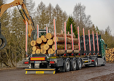 Die Bedienung des Aufliegers wird laut Hersteller zusätzlich durch das hochmoderne Steuerungssystem Doll tronic vereinfacht. Dies spart zusätzlich Zeit beim Be- und Entladen, weil der Fahrer mit Doll tronic - Keypads am Schwanenhals und per Funkfernsteuerung mit Doll connect alle zentralen Aufliegerfunktionen bedienen kann. Ebenfalls kann die Fahrhöhe auf Knopfdruck angepasst werden und die Ladungsposition anzeigt werden. Das System erlaubt dem Fahrer beispielsweise, Lenkung und Fahrniveau des Aufliegers ohne Aussteigen per Knopfdruck zu bedienen. »Die Pendelachse in Kombination mit intelligenter Steuerungstechnik gibt es nur bei Doll«, so Imhof. »Diesen Bedienkomfort im Arbeitsalltag wollen wir nicht mehr missen.« Wenn der Transporteur das Fahrzeug nach dem manuellen Nachlenken wieder einspuren möchte, reicht ebenfalls ein Knopfdruck auf der Doll connect-Funkfernsteuerung. Dabei ermittelt die elektronische Einspurung (EEP) automatisch den korrekten Lenkeinschlag der Achsen.