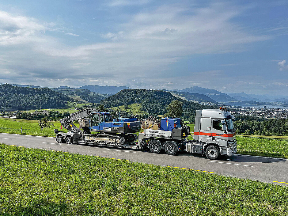 Die Zumbühl Transport + Kies AG ist eine der führenden Speditionen der Schweiz. Das Unternehmen transportiert etwa besonders sperrige Güter, wie Baumaschinen oder Wechselpritschen mit einem Containermaß von bis zu 20 Fuß. Die Wechselpritschen werden mit großen Bauteilen aus dem Holzelementbau beladen und auf den Baustellen zwischengelagert. Die