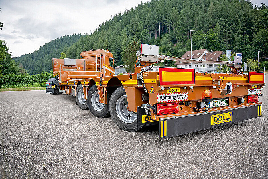 Die Firma Koch aus Metzingen bei Stuttgart transportiert Fertiggaragen, Betonteile und schwere Baumaschinen – oft mit einem Gesamtzuggewicht von über 100 t. Für den Transport von überbreiten Garagen nutzt das Unternehmen seit mittlerweile 13 Jahren mehrere Dreiachs-Semi-Auflieger des Spezialfahrzeugbauers Doll. Nach einer Laufleistung von über 400 000 km standen bei einem der Auflieger nun die typischen Reparaturen an: »Ab einem gewissen Alter stehen naturgemäß bestimmte Verschleißteile auf der Liste und man muss sich fragen, ab wann sich eine Neuanschaffung eher lohnt«, sagt Robert Metzger, Fuhrparkmanager bei Koch. »Unser eigentlich gut erhaltenes Fahrzeug einfach auszumustern, kam für uns nicht infrage. Trotzdem wären weitere Reparaturen auf Dauer unwirtschaftlich gewesen. Deshalb haben wir uns für eine komplette Wiederaufbereitung bei Doll entschieden.«