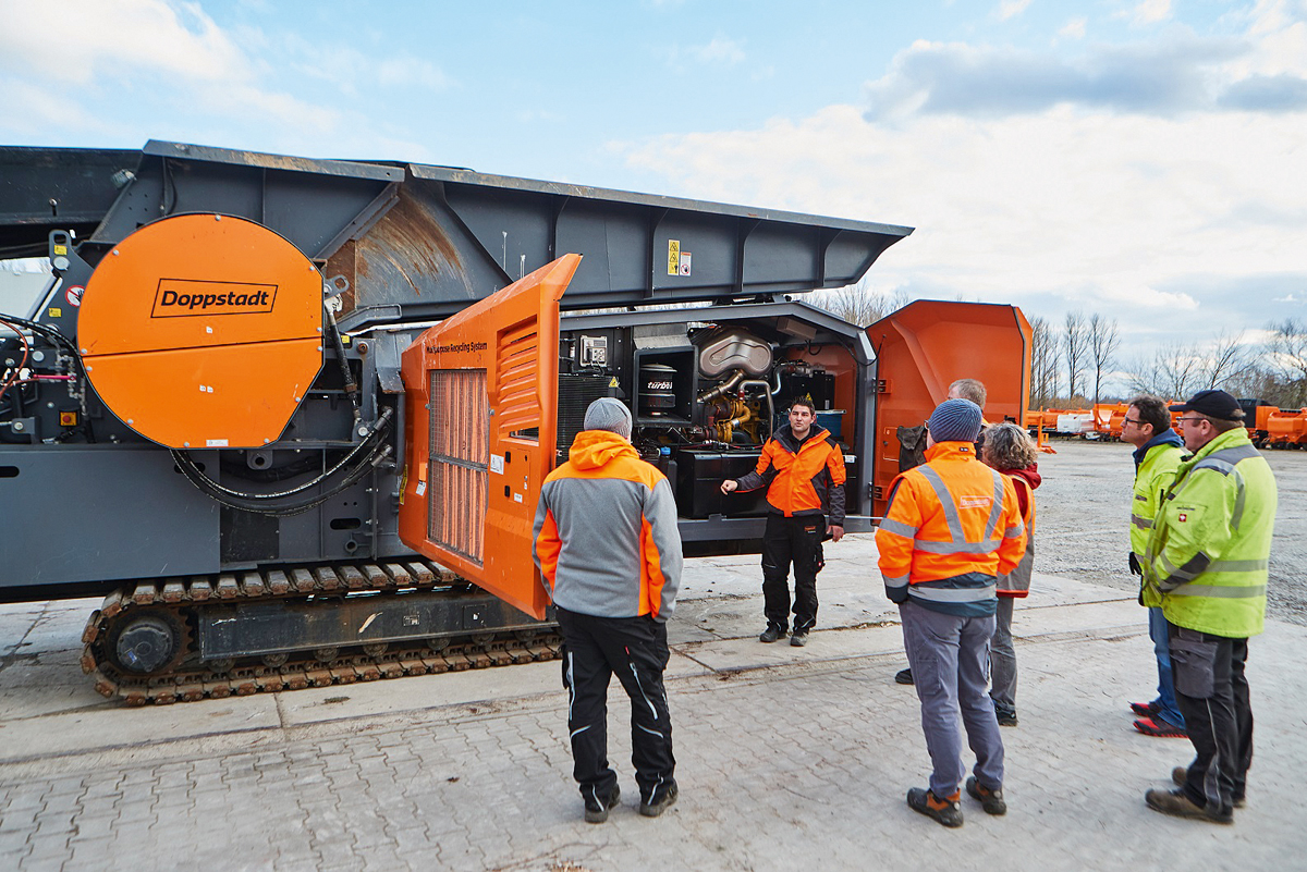 Mit elektrifizierten Antrieben zeigt die Doppstadt-Gruppe ihren Kunden zudem Wege in eine wirtschaftlichere Zukunft auf. »Wir arbeiten derzeit an der Elektrifizierung unseres gesamten Maschinenportfolios«, erläutert Schreier. »Wir möchten mit unseren zukunftsweisenden Aufbereitungssystemen einen wertvollen Beitrag für den Klima- und Umweltschutz leisten.«