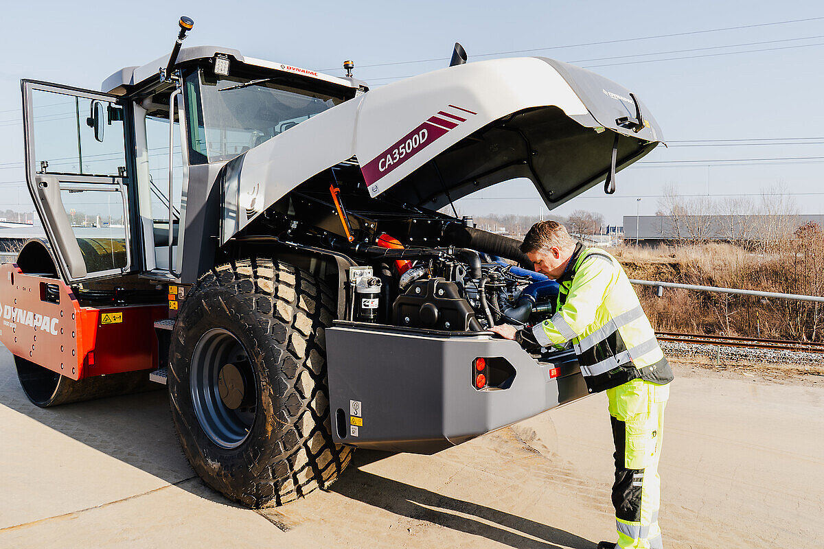 Ein besonderes Konstruktionsmerkmal ist der quer eingebaute Motor, der den einfachen Zugang zu allen Wartungspunkten vom Boden aus ermöglicht. Dies reduziert Stillstandszeiten und erleichtert tägliche Inspektionen sowie Routinewartungen erheblich.