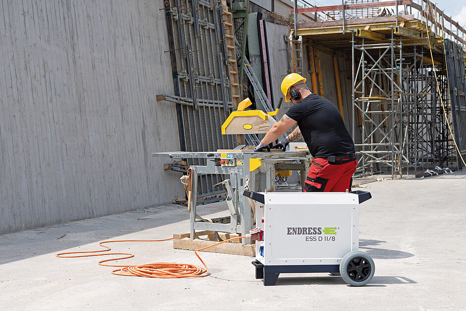 »ESS D 11/8« umfassende Anschlussmöglichkeiten in Form einer CEE 400 V / 16-A Steckdose und drei handelsüblichen 230 V / 16 A-Steckdosen. Ob Bohrmaschine, Elektroschweißgerät oder Tauchpumpe, der »ESS D 11/8« bietet laut Hersteller »die ideale Lösung für nahezu alle Verbraucher – egal wann und wo«.