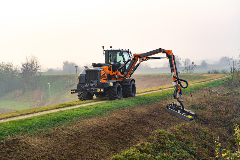 Im mittleren Leistungsbereich ferngesteuerter Geräteträger setzen die Maschinenbauer aus dem Venetto einmal mehr neue Maßstäbe. Beispielsweise überzeugte die dritte, weiterentwickelte Generation des Bestsellers RoboEVO – den es ebenfalls zu sehen gibt – die Praktiker bei Vorführungen in diesem Jahr auch im Vergleich zu Maschinen der Mitbewerber auf ganzer Linie. Immerhin zählt die RoboEVO-Familie zu den meistverkauften ferngesteuerten Mähraupen in dieser Leistungsklasse. Jahrzehntelange Erfahrung sowie fundiertes Entwicklungs-Know-how bei ferngesteuerten Geräteträgern – und vor allem auch bei den eigenen Anbaugeräten – zahlen sich im Sinne des Kunden aus. Neben dem hydraulisch ausfahrbarem Fahrwerk ist auch die hohe Variabilität mit mehr als 35 Anbaugeräten ein zusätzliches großes Plus der Maschinen. „Dadurch kann der RoboEVO ein breites Einsatzspektrum abdecken, was die Maschine wiederum sehr wirtschaftlich macht“, sagt Kemkemer abschließend.