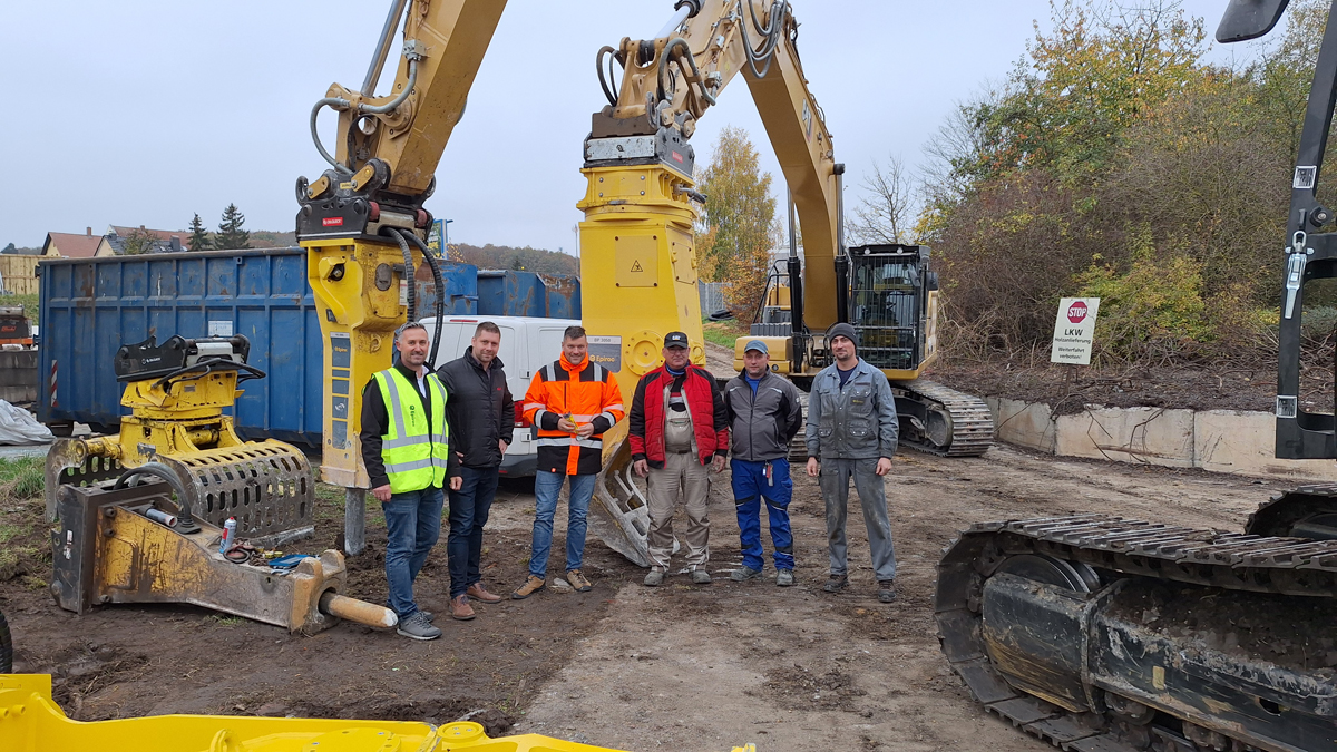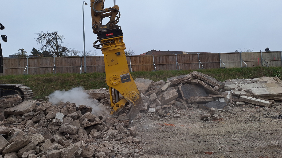 Aktuell kommen die Anbaugeräte von Epiroc im Saale-Holzland-Kreis auf dem Gelände des künftigen Dienstleistungszentrums des Landratsamtes in Eisenberg an der Jenaer Straße zum Einsatz. Hier haben die Entkernungs- und Abrissarbeiten des ehemaligen Heizhauses begonnen. Die Flachbau-Zeile wird zunächst entkernt und der Betonschutt wird genutzt, um ein Fallbett für den alten, 60 Meter hohen Schornstein zu bilden, der teils per Kran und teils durch eine professionelle Sprengung abgetragen wird. Der Containerdienst Adler GmbH & Co. KG übernimmt hierbei den Rückbau.