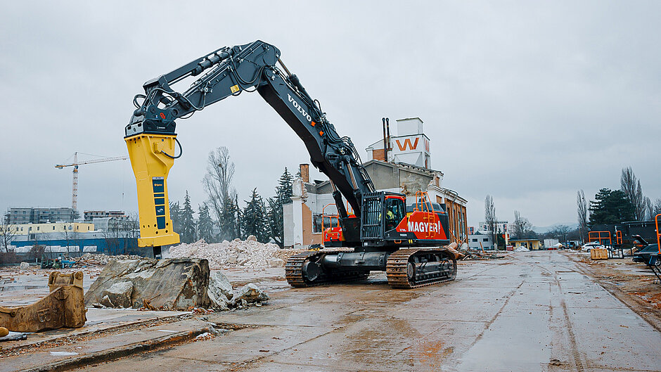 „Unsere Volvo Trägergeräte mit den Anbauwerkzeugen von Epiroc sind eine unschlagbare Kombination. Die Effizienz, schwere Abbrucharbeiten in kürzerer Zeit durchzuführen ist für uns von höchster Priorität“, so Marcel Magyer, Geschäftsführer von Magyer Betriebs GmbH.