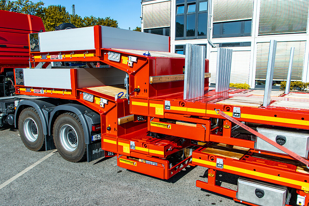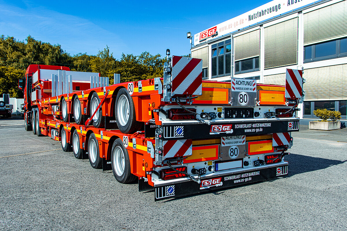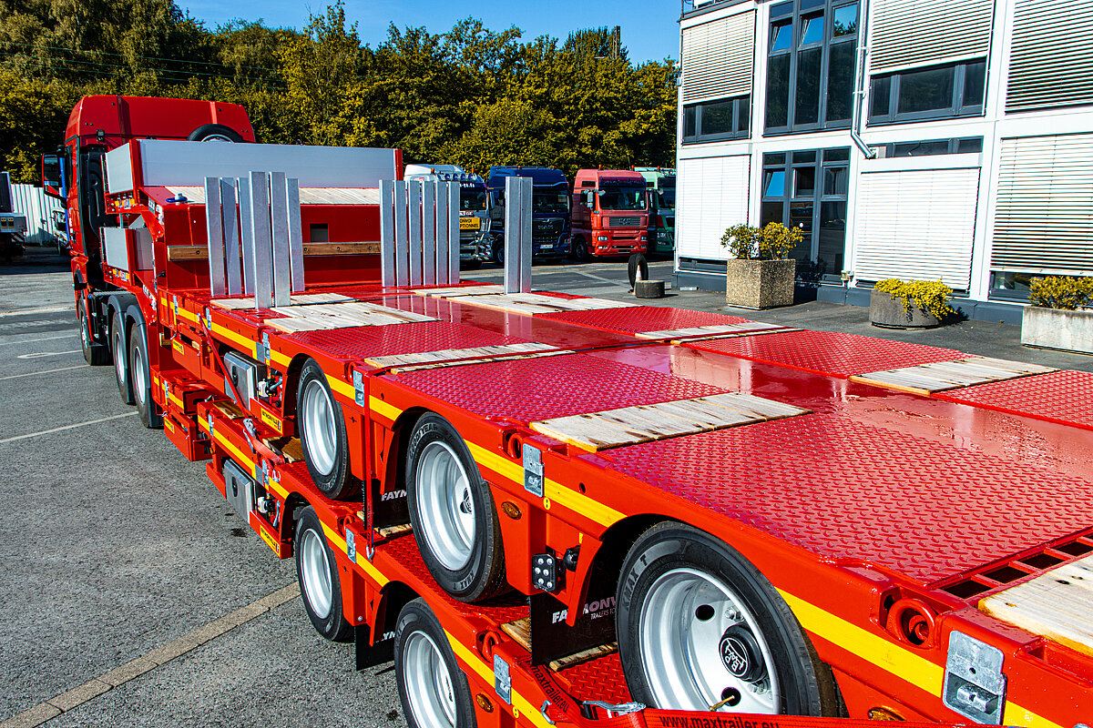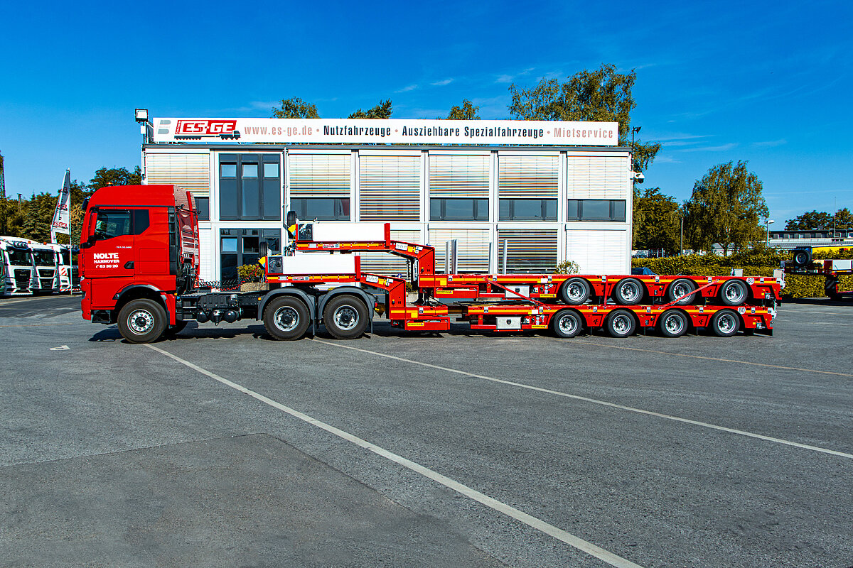 Mit der aktuellen Lieferung setzt Nolte die erfolgreiche Kooperation fort und stärkt zugleich seine Transportkapazitäten im Bereich der Schwer- und Spezialtransporte. Die beiden 4-achsigen, hydraulisch gelenkten und teleskopierbaren Satteltieflader vom Typ MultiMax sind individuell auf die Anforderungen von Nolte zugeschnitten und bieten von Haus aus ein breites Einsatzspektrum.