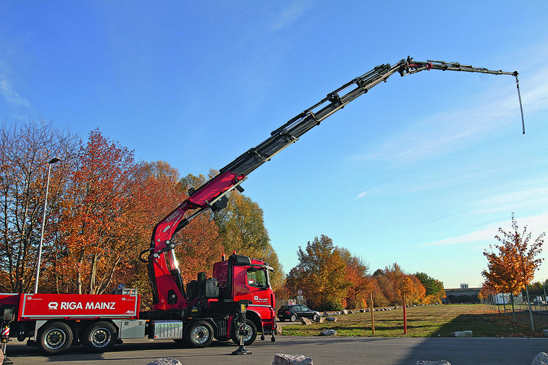 Zusammen mit seinem fahrbaren Untersatz, einem Arocs-3751-Vierachser, steht der F2150 seit 15 Monaten in den Diensten von Riga Mainz.