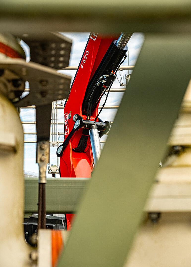 Schwere Fassi-Ladekrane wie der F820RA.2.26 verfügen über besondere Eigenschaften wie außergewöhnliche Hubleistungen mit auf Mindestmaße beschränkte Maschinen, die darüber hinaus noch ein relativ geringes Gewicht auf die Waage bringen. Der Hersteller begründet das durch den Einsatz spezieller Materialien, vor allem Stähle mit höchster Elastizitätsgrenze, die einerseits extrem widerstandsfähig sind und es andererseits ermöglichen, die Gewichtsverhältnisse zu optimieren. Nur so war es möglich, wie der italienische Hersteller es bezeichnet, „Krane ohne Kompromisse“ zu produzieren. Das gilt auch für den Ladekran F820RA.2.26. Dieser zeichnet sich außerdem durch ein integriertes Steuersystem (IMC), eine Überlastabschalteinrichtung (FX900), eine digitale Funksteuerung und einem Endlosschwenkbereich für 360 Grad Rotation aus.