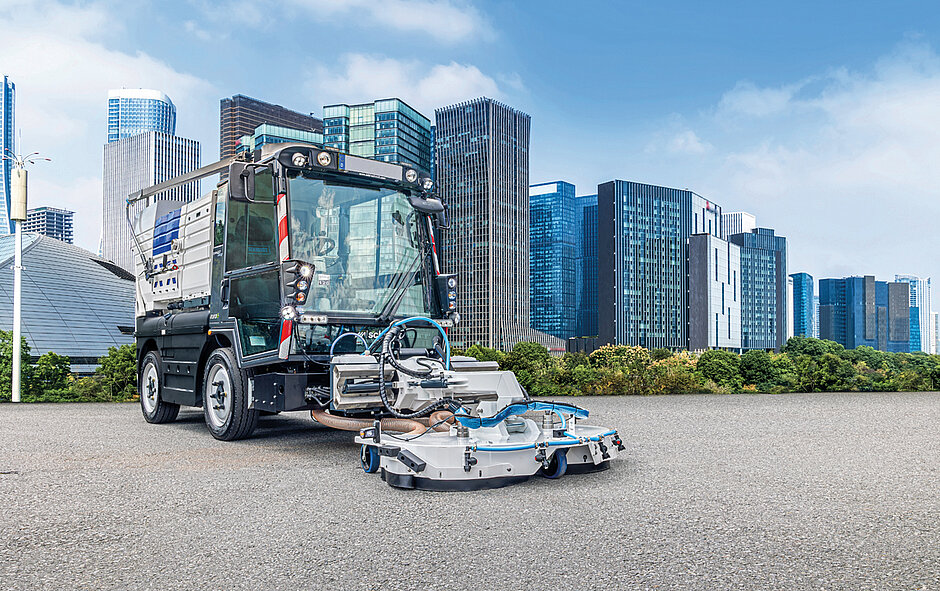 Das Schrubbdeck FSD 1 400, das in Kombination mit jedem Kehrgutbehälter arbeitet, ist auf die mechanische Reinigung mit Bürsten ausgelegt.