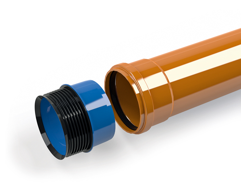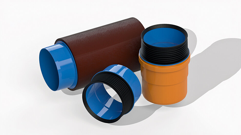 Neu ist in der Produktfamilie auch ein Reduzierelement, das Rohre mit einem Innendurchmesser von 220 mm bis 225 mm mit einem Spitzende in DN 250 verbindet. »Den Innen-/Außen-Adapter mit Reduzierung hatten wir eigentlich kundenspezifisch entwickelt, haben ihn aufgrund der großen Marktresonanz jedoch nun in unseren Katalog aufgenommen«, sagt Roland Mertens. Mit dem Standardsortiment in DN 125, DN 150, DN 200, DN 250, DN 300 und DN 225/250 deckt der Innenadapter die wichtigsten Anwendungsbereiche im Tief- sowie Kanalbau ab. Er lässt sich außerdem für Mauerdurchführungen oder im Sanitärbereich einsetzen.