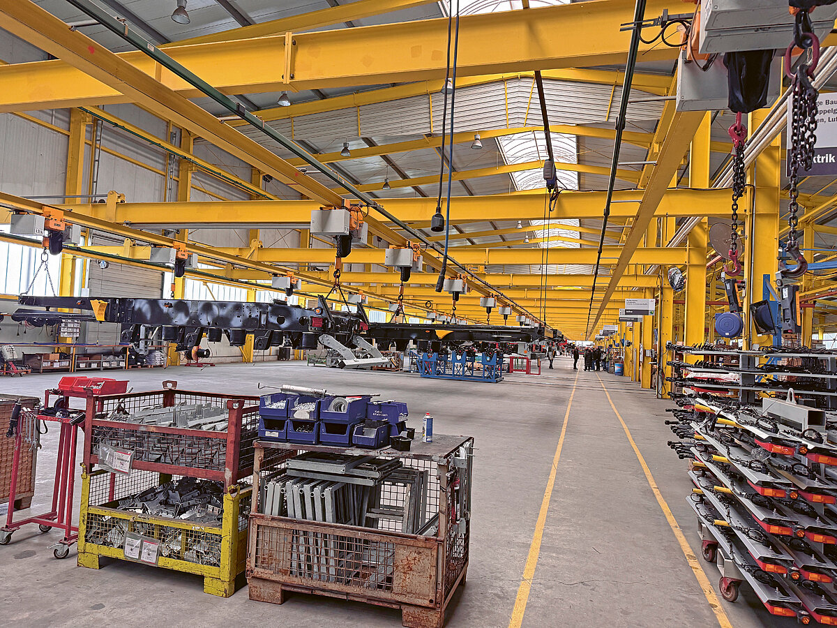 In Zahlen ausgedrückt bedeutet diese Neuerung vor allem eines – eine um 74 Prozent kürzere Strecke. Statt der bisherigen 1 000 m zwischen allen Stationen misst die Strecke jetzt nur noch knapp 260 m. Für Fliegl bedeutet das erheblich kürzere Werksverkehre, dementsprechend weniger CO2-Ausstoß und eine spürbare Zeitersparnis in der Montage. »Mit der Werksumstellung ergeben sich pro Jahr innerbetrieblich 1 150 km weniger Strecke, die zurückgelegt werden müssen. Das ist so viel wie von uns nach Kiel und zurück«, erklärt Geschäftsführer Helmut Fliegl.