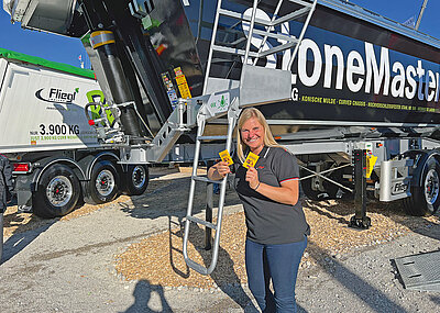 Bei dem ausgestellten Fahrzeug werden zwei der vielen möglichen Rampenvarianten gezeigt. Ob mit Holz oder als verzahnte Stahlschienenrampe, dank der Gasdruckheber ist der Ein-Mann-Betrieb möglich. Dies gilt auch für den seitlichen Verschub der Rampen.