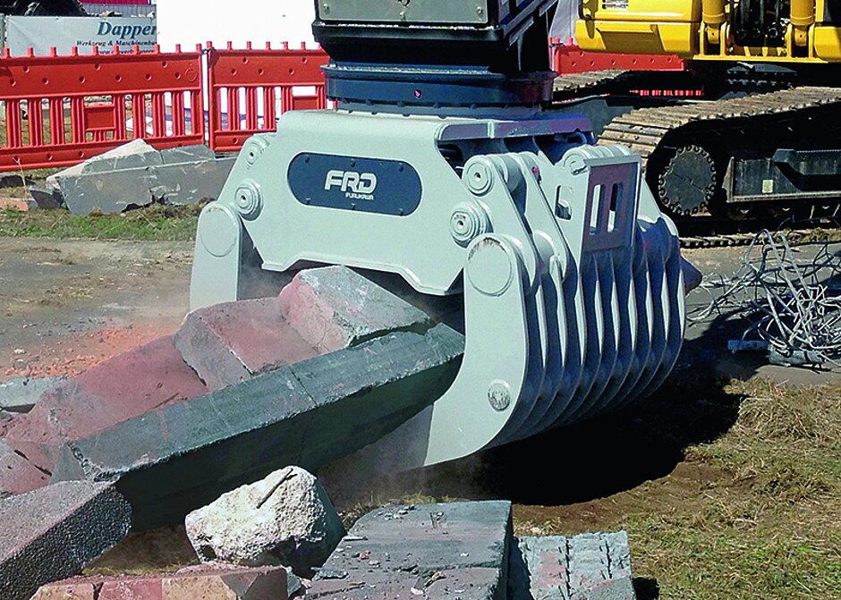 Um den Recycling-Kreislauf ohne großen Aufwand zu gewährleisten, bietet FRD ebenso Abbruch- und Sortiergreifer an. Aus diesem Segment wird in Karlsruhe der FDG20PL vorgestellt. Mit diesem Gerät kann das vorher gelöste Material selektiert, sortiert und verladen werden. Die kleine Serie der FRD-Abbruch- und -Sortiergreifer zeichnet sich durch eine hydraulische Dreheinheit mit hochtragenden Axial- und Radiallagerungen mit Kompaktmotorantrieb aus. Die Bauweise ist flach und kompakt, die Greiferhydraulik und Gleichlauflenkung sind geschützt in der Traverse angeordnet.