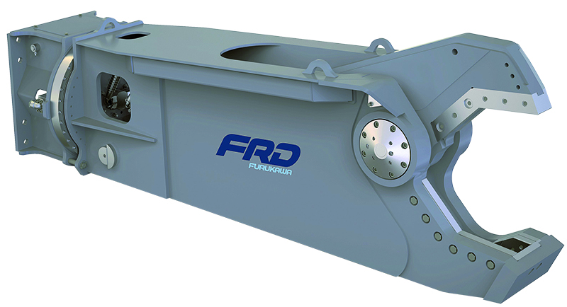 Zur Komplettierung des Recycling-Einsatzes zeigt FRD auf der Messe zudem einen Auszug aus den Hydraulikhammer-Serien der Modelle FX und FXJ. Für die FX-Serie – konzipiert für Minibagger von 0,5 t bis 7 t Dienstgewicht – unterstreicht der Hersteller eine konsequente Weiterentwicklung. Dank intensiver Forschung, gemeinsam mit der Technischen Universität Tokio und der Erfahrung aus mehr als 30 Jahren Hydraulikhammerbau, habe man einen Großteil des entstehenden Arbeitslärms weiter reduzieren können. Ein neu entwickeltes Schlagwerk minimiert zudem die Vibrationseinleitung in das Trägergerät und somit auch die Belastungen für den Bediener erheblich. In Verbindung mit einer neuen Hammerführung im Gehäuse und Gummistopfen in den Servicebohrungen sowie einem neu entwickelten Meißel wurde eine weitere Schalldruckreduzierung bis 7 dB erzielt. t